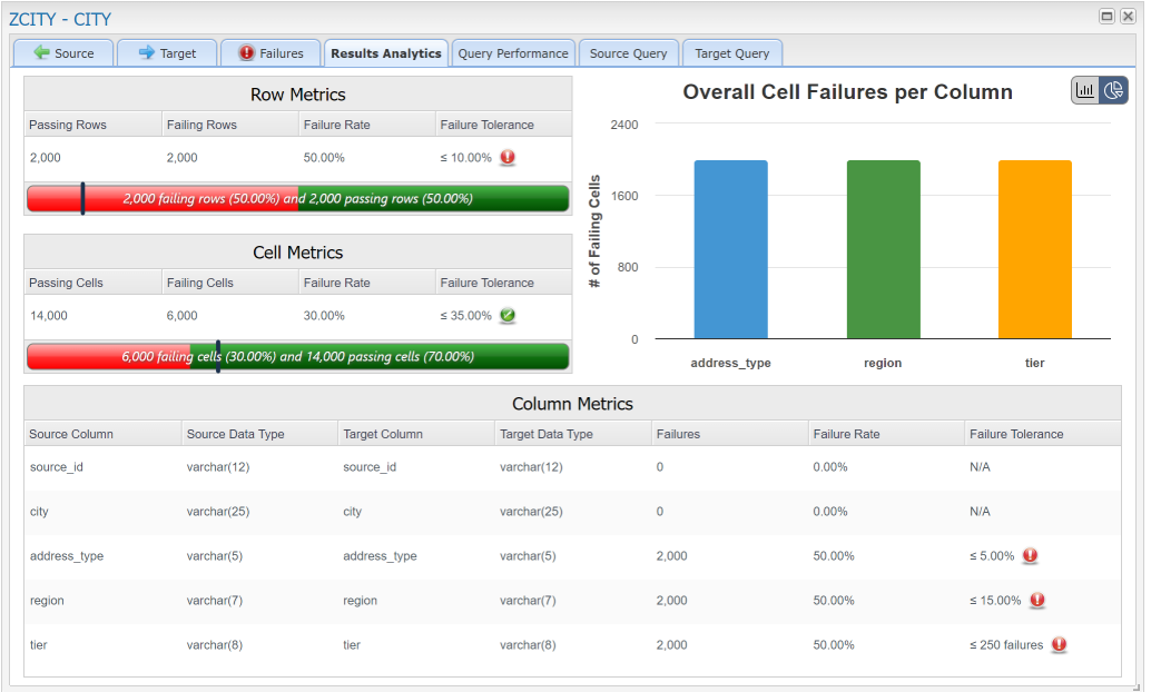 - Use Result Analytics to gain insights into the results and outcome metrics of individual tests at the row, cell, and column levels.