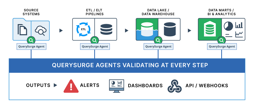 Instead of guessing whether data is trustworthy, QuerySurge proves it with automated, repeatable tests that run where your data lives and wherever it moves.