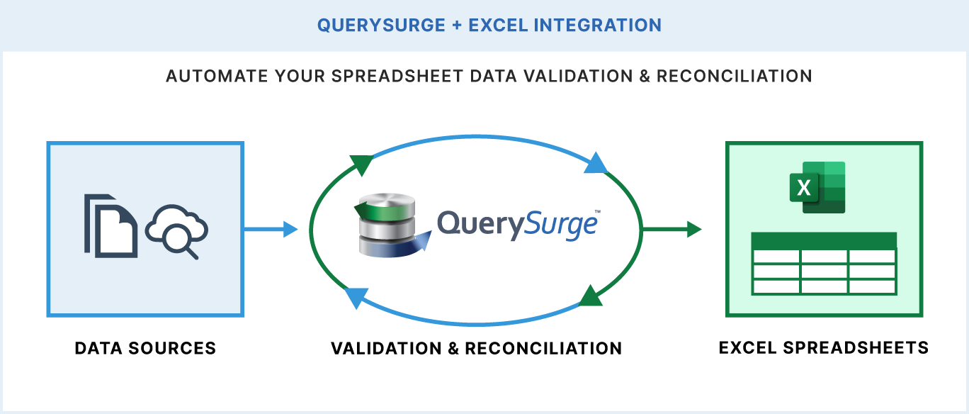 QuerySurge connects directly to Excel files, treating worksheets and ranges as testable datasets.